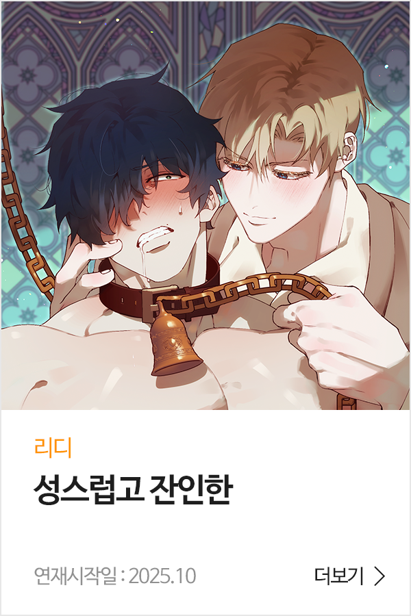 성스럽고 잔인한장르: 성인BL | 연재: 2025.10~ | 리디 SYNOPSIS 겉으로 보기에는 모든 조건을 타고난 강자, 알파인 성혁모두가 부러워하고 질투하지만 그 속에는 커다란 고독이 자리잡고 있다.그를 혐오하기까지 하는 부모, 자신에게 무른 걸 이용하여 정신을 장난감처럼 주무르는 의붓동생 유인어느날 몸에 이상이 생겼다는 걸 인지한 순간, 성혁의 인생은 돌아올 수 없는 강을 건너고 만다.더이상 알파가 아니게 된 몸에 적응할 새도 없이 의붓동생의 계략에 속수무책으로 무너지게 되는데… 글 ,그림 | 우양도움 | 줏대제작지원 | 스튜디오103담당PD | 이윤호